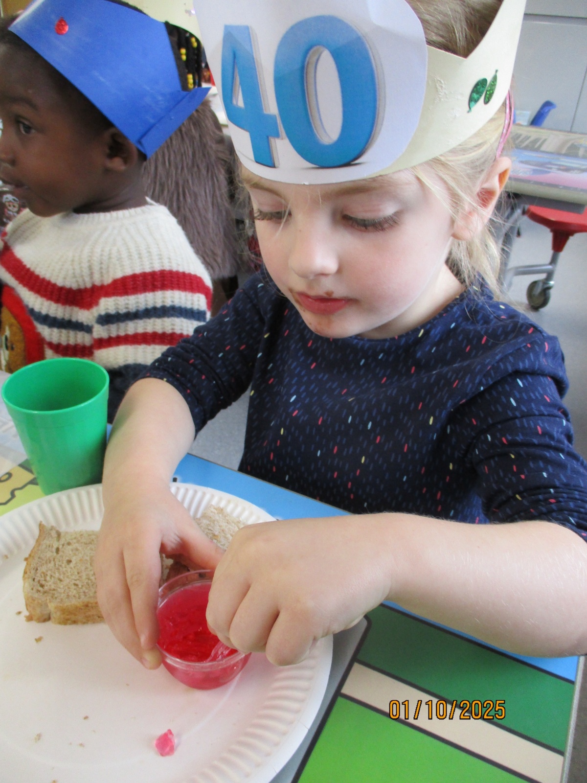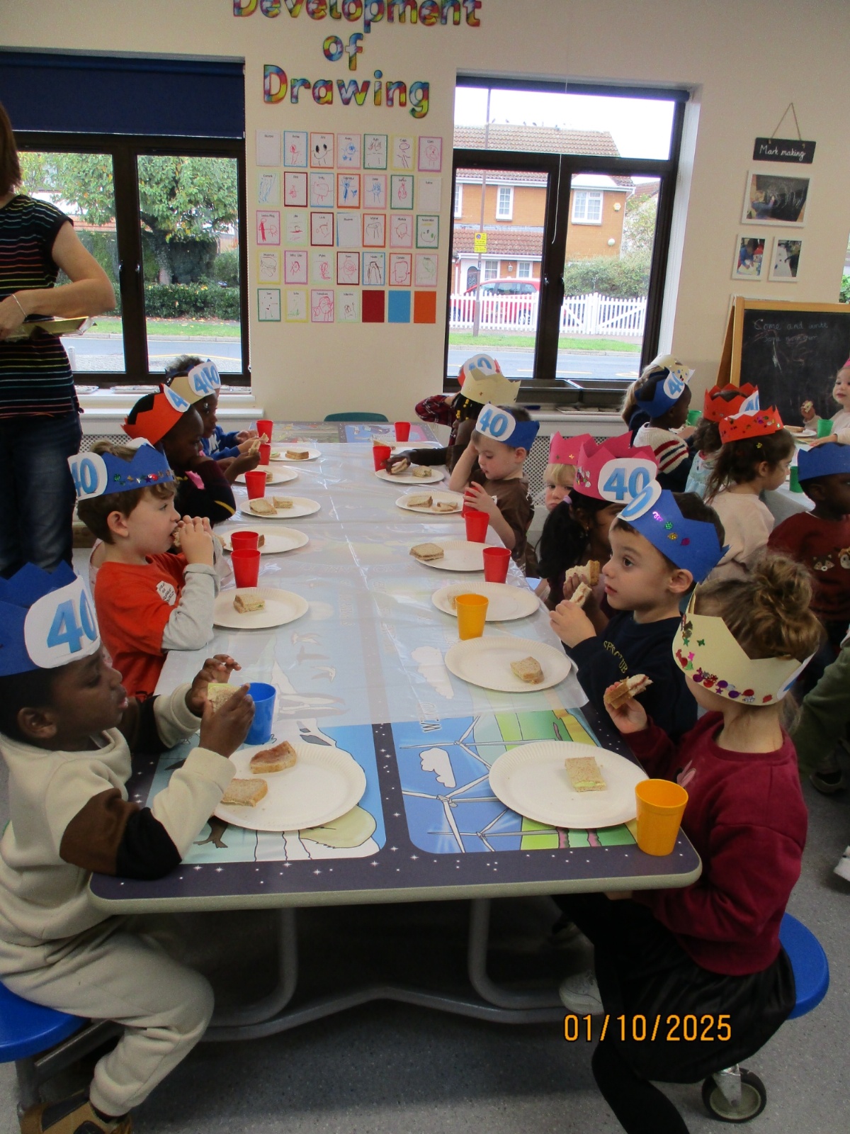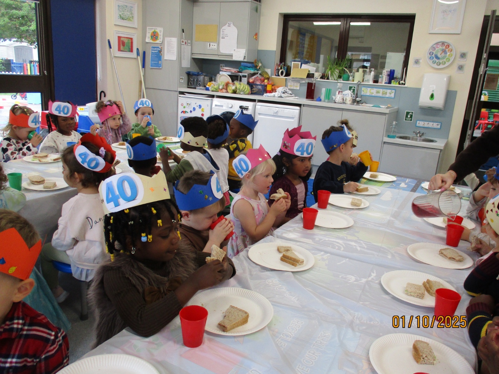 The children have had a memorable day celebrating the school's 40th Birthday! We danced, played games, ate a party snack and decorated a cake.