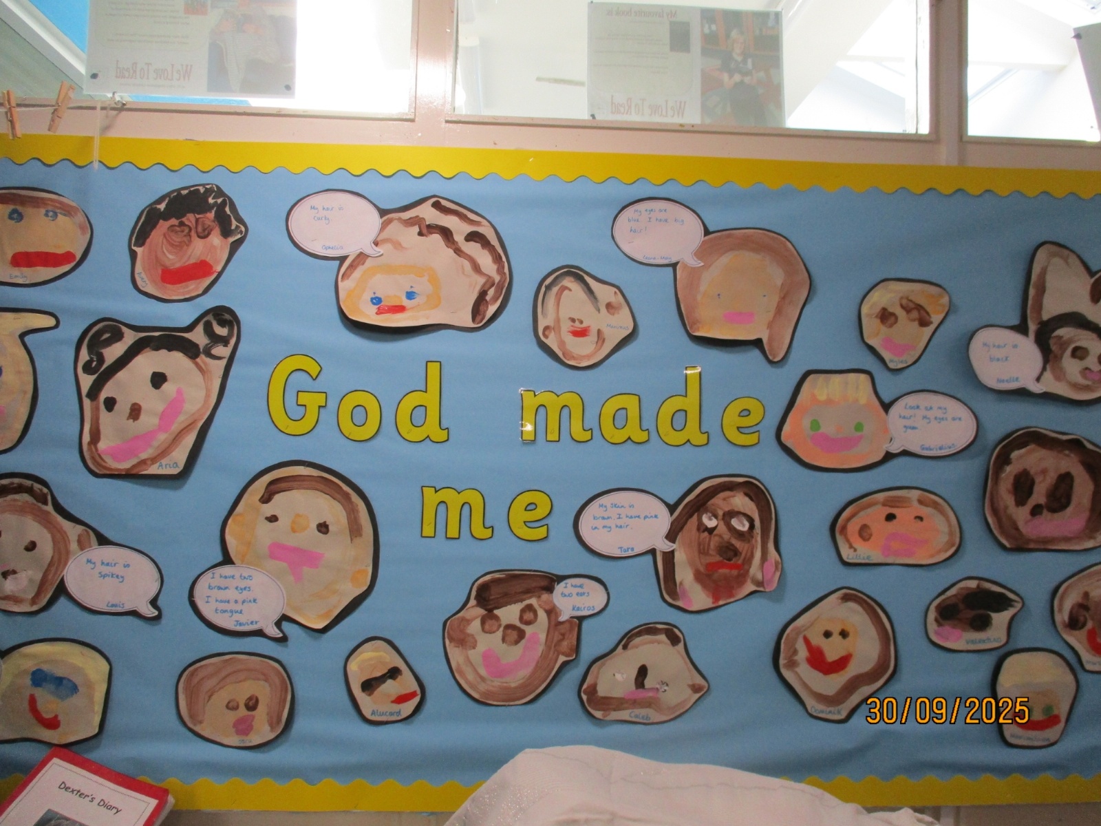This half-term the children learnt how God created the World through the story of Creation. How God made us all, He loves us and He knows our name. How we enter into God's family through Baptism. The children have learnt how to be still and quiet and how to say our prayers and the Sign of the Cross.