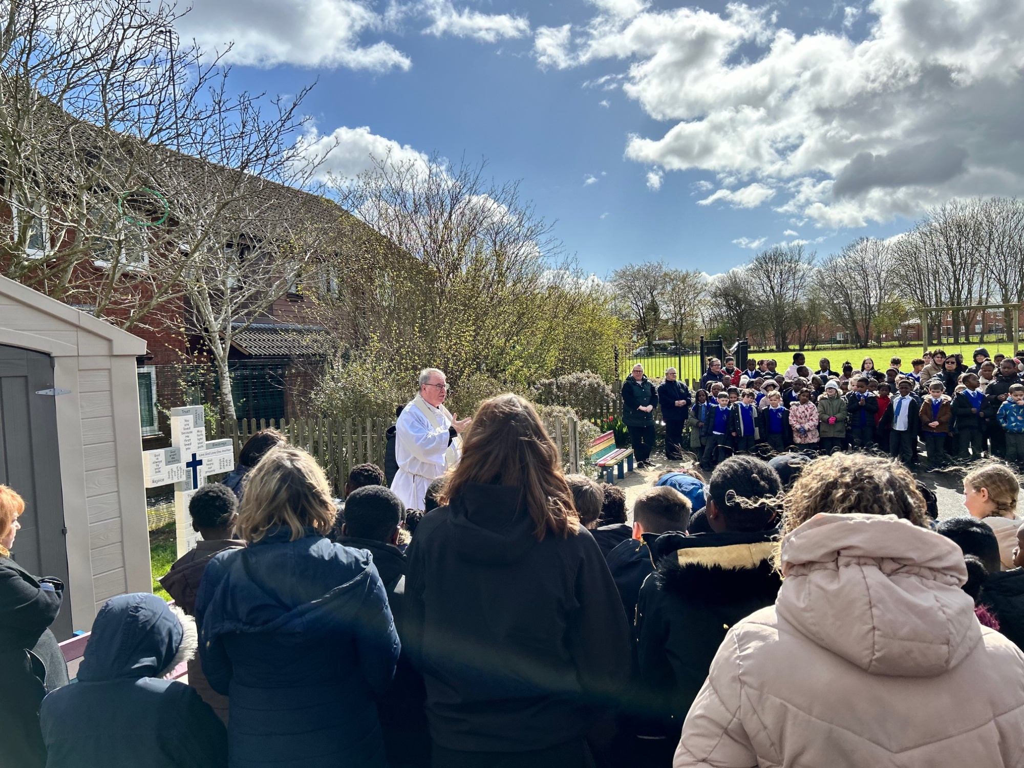 Father Bernard spoke to the children about the significance of the cross to Christians, led us all in prayer and a hymn.